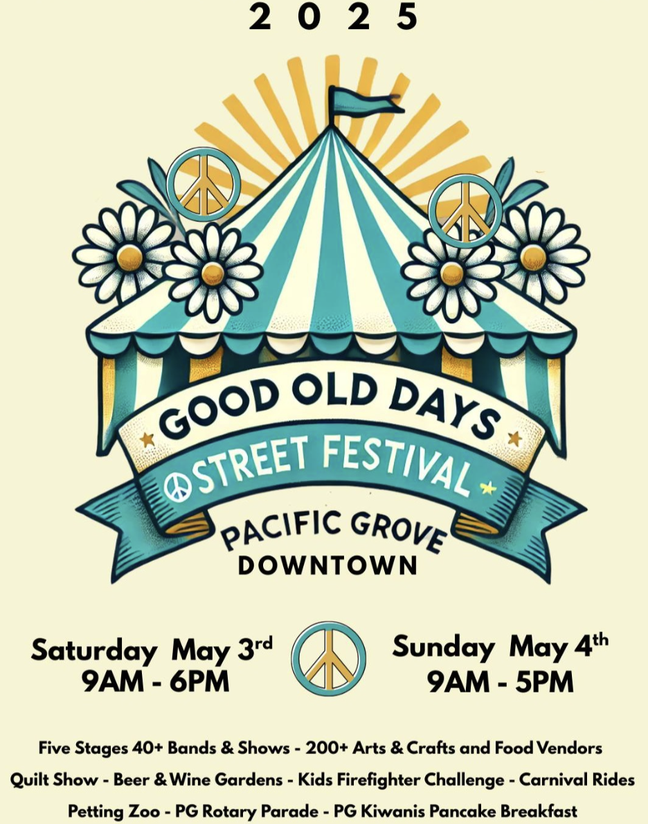 Good Old Days massive street festival and fair, in 2025, will take place in downtown Pacific Grove and features over 60 bands and shows over five stages, 225 Arts and Crafts vendors and 35 food vendors.