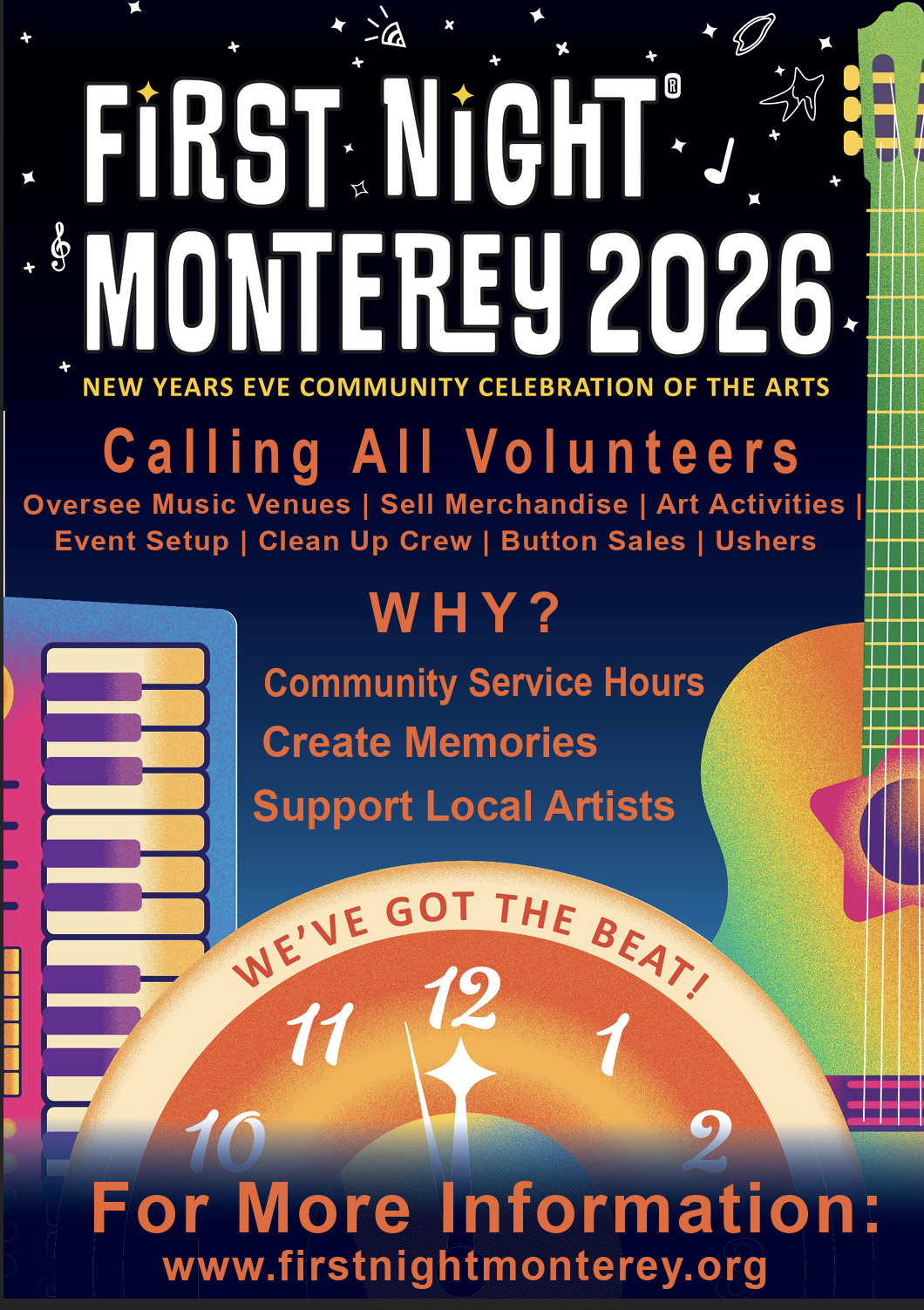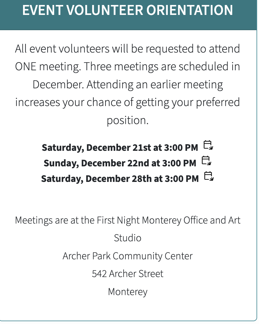 To Volunteer, please visit: firstnightmonterey.org or sign up HERE!